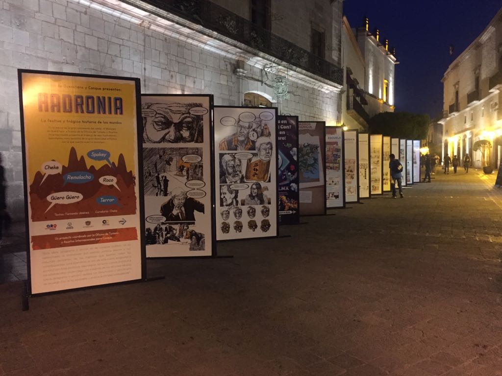 Estarán ubicadas en Andador 5 de mayo, Andador Libertad Oriente y el Museo de la Ciudad de Querétaro. La entrada es libre y se expondrán temas relacionados con las historietas y su impacto en los hogares y una muestra especial de Germán Butze y su obra, Los Supersabios. Acompañando el poder del cómic seis artistas locales, Cheke, Güero Güero, Remo, Roko, Spokey y Terror, presentan el cómic “Hadronia”.