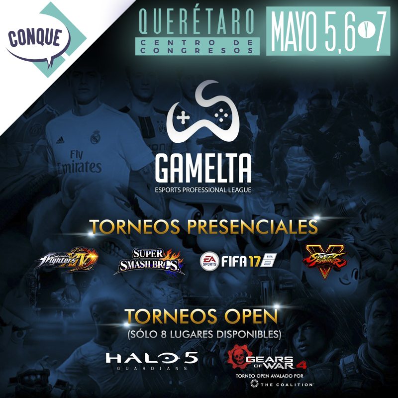 Por primera vez en el evento de cómics más grande de México, CONQUE, se abrirá un pabellón 100% eSports, el cual será producido y operado por Gamelta eSports Professional League. Parte de las actividades que se vivirán en el evento, son las finales nacionales de su primera temporada 2017, donde los finalistas se disputarán una bolsa de más 100 mil pesos en premios, las finales que podremos disfrutar son: Halo 5, League of Legends y Overwatch además de las finales para los torneos abiertos para todo el público asistente.
