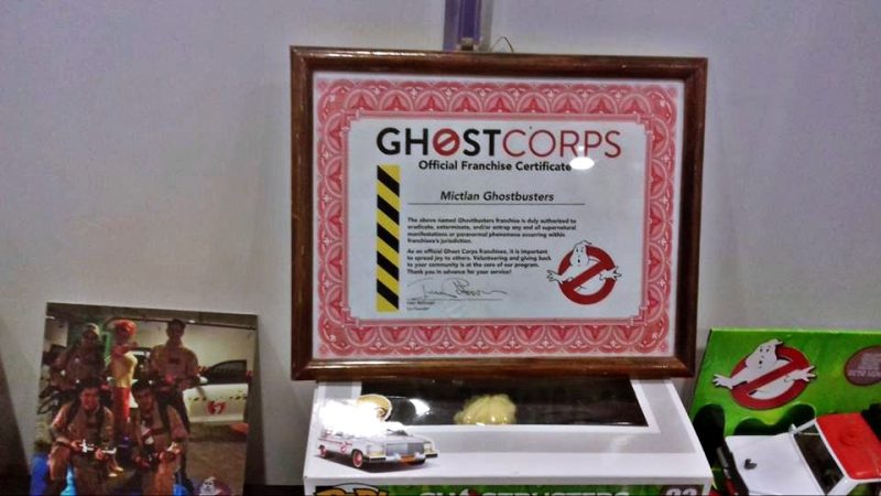 Diego García y Jinzo Stanz fundadores del MICTLÁN, son 2 de los más grandes fans y coleccionistas de artículos Ghostbusters de Latinoamérica, ademas de tener en su poder varios «proton-packs» replica de los usados en las películas, cuentan con verdaderas piezas de colección de la franquicia. En este evento especial, estuvieron acompañados por los miembros: Orlando, Stephanie, Susan y Diana.