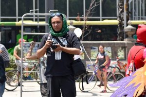 Apunto de retirarme veo a una pequeña con su vestido naranja y bigotes pintados en su cara, Anayuli San, me dice que le provocó curiosidad y quiso venir a convivir a la marcha, es su primer año, vino con su mamá, hermano y su perrita, a ella la llegue a observar en varias ocasiones en el transcurso de la marcha le pregunte respecto al clima, sorpresa para mí al escuchar su respuesta, el clima está muy bien, ella estaba feliz con su disfraz de Naruto,