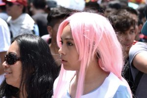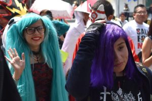 Llegamos por fin a la Estela de Luz, por breves minutos las escaleras se atiborró y como no hubo nada de organización comenzaron después de varios minutos a pedir que se concentrarán en el centro, dejando libre los costados para el acceso, se supone que iba a ver un concurso de Cosplay, Karaoke y algunas sorpresa más, por desgracia las personas sometidas al sol comenzaron a retirarse poco a poco, había varios que comentaban lo mal que estuvo la marcha éste año, que no fue lo mismo al año pasado, otros mencionaban que tal vez los Cosplay están en Ecatepec en otro evento, fue cuando me encuentro a una pareja y me comentan que no fue buena marcha, el sol, como también la economía hizo que algunos pequeños no fueran con su disfraz, recomendaron para futuras marchas venir con agua, un paraguas, que usen el mismo disfraz del año pasado, lo importante es disfrutar de manera sana, les pregunte cómo se sintieron y sin titubear me contestaron que muy bien, que ellos disfrutaron y estaban felices.