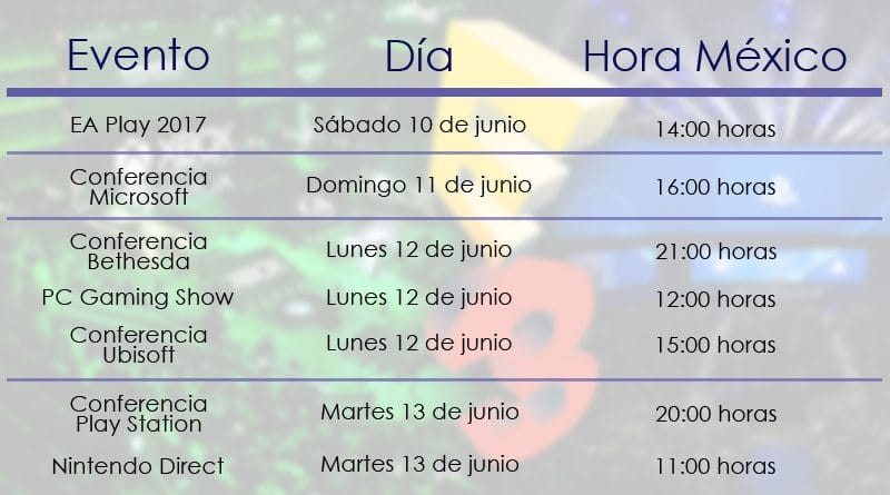 A unos cuantos días de que el E3 2017 arranque, la expectativa va creciendo poco a poco, ya que el panorama del Electronic Entertainment Expo de este año luce bastante prometedor y nos ilusiona el conocer las sorpresas que las compañías nos traerán este año. Es por eso que les dejamos los horarios y fechas de las conferencias que tendrán lugar durante el E3 2017.