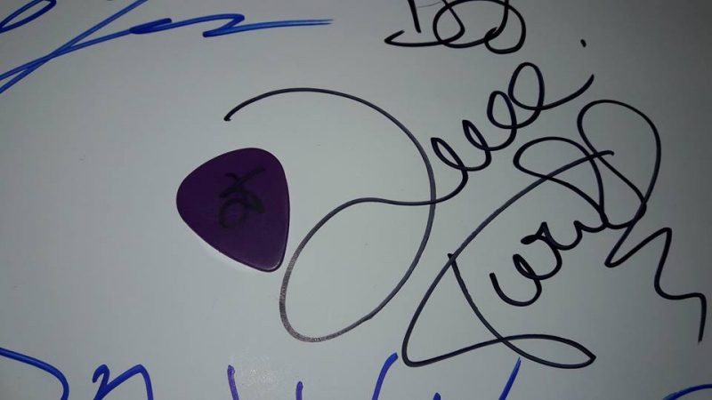 Nuestra petición tuvo recompensa, la ‘pua’ cayo poco adelante de la barra de protección, me tuve que tirar prácticamente al suelo y mis lentes, que después recupere sin daño, salieron volando, pero el objetivo se había conseguido para continuar con mi buena racha, ya que en los últimos 4 de 5 conciertos que he asistido he obtenido una plumilla en: Megadeth, Angeles del Infierno, KISS, Metallica con excepción de Black Sabbath que ahí si prácticamente estuvo imposible.
