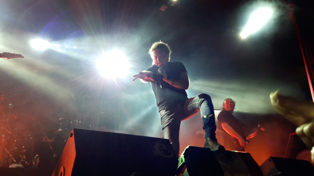 La imagen del Dragón del ‘Farewell Tour’ se veía al fondo, las potentes luces rojas que lo iluminaban lo hacían lucir más, es en ese momento cuando aparece en escena Fabio Lione, saludando y comenzando de inmediato a ‘atacar’ las letras de las canciones que han hecho de Rhapsody una de las bandas más emblemáticas de todos los tiempos, así, con el profesionalismo que lo caracteriza Fabio comenzó a ‘elevar’ esas notas de voz operísticas agudas. Cuando uno lo ve interpretar es de verdad de total deleite, ya sea por la potencia, fuerza o entrega que solo él sabe hacer.