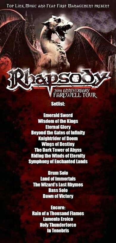 Definitivamente Rhapsody empezaba su gira por Latinoamérica con toda la energia, me senti muy complacido con este concierto, la verdad es que también siento un poco de nostalgia saber que Rhapsody como tal, deja de existir, por haber cumplido (en voz de sus integrantes) un ciclo. La verdad, dejan un vacío muy grande, saber que esos temas dejaran de escucharse en un escenario es simplemente inconcebible, sin embargo Fabio Lione y los demás integrantes tienen proyectos personales que los mantendrán dentro del circuito del Power Metal. La verdad fue un privilegio y un placer haber sido testigo de este evento y decir, yo estuve ahí, en este compromiso indiscutible con la historia y con el rock.