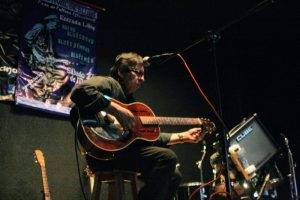 El lleva diez años tocando blues pero no comenzó tocando la música de la tierra «comencé tocando rock y después el blues blanco, hasta que llegamos al verdadero blues, somos como un ping-pong en estilos musicales, mi primer disco de blues se llamó «reflexiones caleidoscopicas de una ciudad moribunda» pero tuve mucha carrera antes, toqué con Ramses (banda pionera del metal mexicano) hubo situaciones por las que me salí y me dediqué mucho al teatro hice una obra que trataba de la vida de Pierre Curie y Marie Curie, hice otra obra llamada «ataque al corazón de la urbe» y junto con una sobrina de Pedro Infante realizamos «la balada de John y Yokko» esa obra duró seis años y después ella ya no pudo y ya no seguimos» como pueden ver trayectoria no le falta al señor.