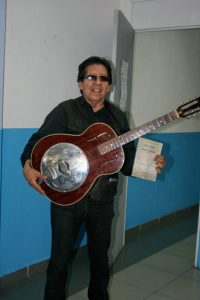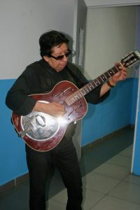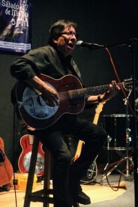Este señor además de músico se desempeña como catedrático en la UAM campus iztapalapa, en medio de su labor docente ha grabado varios discos «primero grabé un acoplado de blues, después grabé uno que se llama «Lucha contra el sistema» por eso luego me tocó que me vieran medio raro pero ese disco me dió la oportunidad de tocar junto a José de Molina ante 20,000 en una protesta de los profesores, después de ese concierto se me acercaron a decirme que me calmara (risas) después realicé «Ataque al corazón de la urbe» que te decía antes pero este disco fue mas de rock; el blues llegó con «el blues nuestro de cada día» del cual ya quedan muy pocas copias y después me apoyé en una gran alineación de músicos para hacer «Delta Blues» después llego «versiones y diversiones del blues» y «border blues» que trata sobre toda la onda que vive la gente en la frontera y que trata de temas como los inmigrantes o las muertas d Juárez».