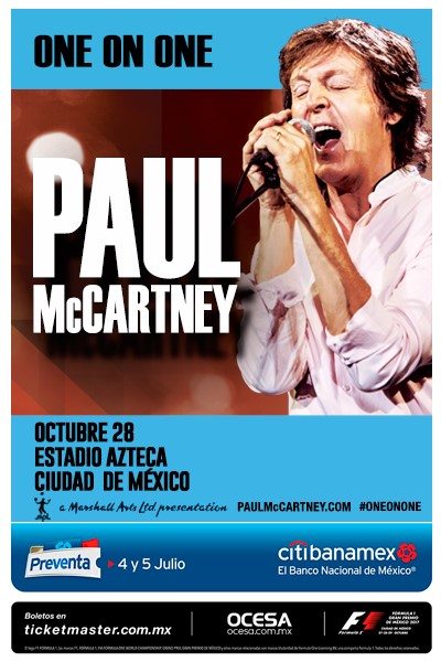 El concierto programado para el 28 de octubre en el Estadio Azteca de la Ciudad de México marca la primera visita de Paul a México en 5 años. En su último viaje se presentó en un concierto masivo histórico en el Zócalo de la Ciudad en el que convocó a 250,000 fans. Desde su primera visita en 1993 Paul ha tocado 10 veces en México.