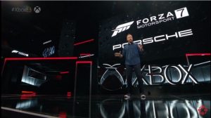 Forza Motorsport 7 el primer juego develado con la tecnologia de Xbox One X, a 60 fps junto a dos conductoras profesionales Verena Mey & Shanon Mcintosh campeonas en Esports (y luego las feministas dicen que desconocemos las mujeres gamers), ellas motrarion diferentes variables climaticas del juego como un camino seco, soleado y rocoso, ai como uno humedo y con lluvia, tambien se mostró un auto que Porsche jamas había develado y hace aparición en este titulo el Prsche 911 GT2 RS, las gráficas sumamente impresionantes!