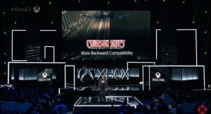 Otro anuncio relacionado a Xbox One y su familia Xbox One S y Xbox One X fue el anuncio de que el sistema de retro compatibilidad con Xbox 360 seguía en aumento del catalogo de este mismo y no solo eso se anuncio que la retro compatibilidad se extenderia a la X Box original y sus juegos serian soportados por los sistemas X Box One, anunciando como el primero de estos Crimsom Skies un juego de vuelo en un mundo alterno, de los mejores de la caja X original. También se anuncio que los primeros titulos que salieron para Xbox One y S se lanzaría una actualización para que se pudieran reproducir en 4K con el uso de Xbox One X, que van desde juegos como Rise Son of Rome hasta Ghost Recoon Wild Lands.