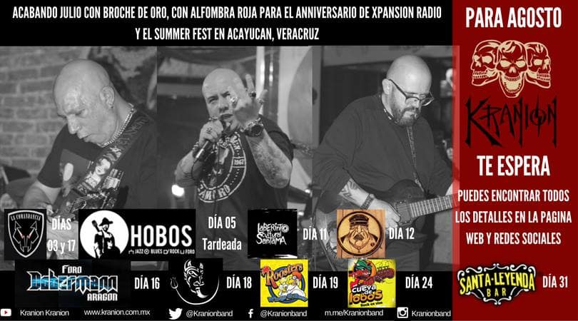 KRANION cierra el mes de Julio estrenando video-clip TEATRO URBANO y con grabación de tercer video SELVA DE MI TIERRA en Acayucan, Veracruz, presentándose además en el ROCK SUMMER FEST de dicha ciudad.