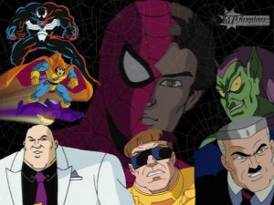 Quiero hacer una breve mención a la serie animada de el año 1994, simplemente llamada «Spider-Man» La serie se compuso de 65 episodios siendo esta la serie más extensa del hombre araña, una galería de villanos muy bien adaptados de los cómics, tramas complejas y momentos realmente emotivos tanto de Peter Parker como de el propio Spider-Man, las primeras apariciones en animación de los seis siniestros, nuestro primer Spider-Verse y esas escenas épicas para fan en las que Spidey interactúa con otros personajes como el Capitán América o los X-Men; aquí en México la vimos con un excelente doblaje con Armando Coria como el Hombre Araña, Ruth Toscano en el papel de Mary Jane Watson e Ismael Castro como el Duende Verde.