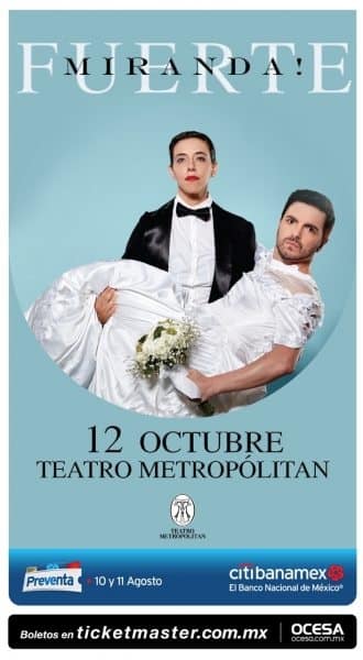 Ahora, Miranda! hará una escala importante en nuestro país para presentar de manera oficial su disco Fuerte. Esto sucederá el próximo jueves 12 de octubre en el Teatro Metropólitan. La preventa citibanamex se realizará los días 10 y 11 de agosto. Mientras que la venta al público en general comenzará a partir del 12 de agosto en las taquillas del inmueble y a través del Sistema Ticketmaster.