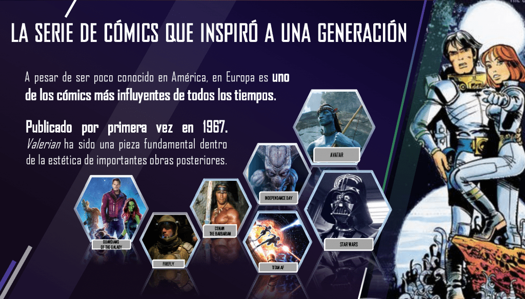 Basada en la revolucionaria serie de cómics «Valerian y Laureline», de Claude Mézières y Pierre Christin, que inspiró a toda una generación de artistas, escritores y cineastas.
