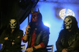 No solo usan este terrador maquillaje para llamar la atención, ellos son una banda de Heavy Metal que puede ser una gran opción si deseas iniciar a escuchar heavy metal; estos demoníacos se hacen llamar Eternal Halloween y son originarios de los Ángeles; California y como puedes ver su maquillaje demoniaco esta muy bien elaborado y llamativo; además este Halloween Eterno tiene un sonido que aunque pesado es muy digerible para cualquier escucha aunque apenas se vaya adentrando en el mundo del metal, ellos serán el atractivo principal de un par de conciertos en el Foro Moctezuma los días 28 y 29 de septiembre además de hacer una pequeña gira por nuestro país, llevando su sonido entre heavy metal clásico y metal industrial a todos los escuchas mexicanos.