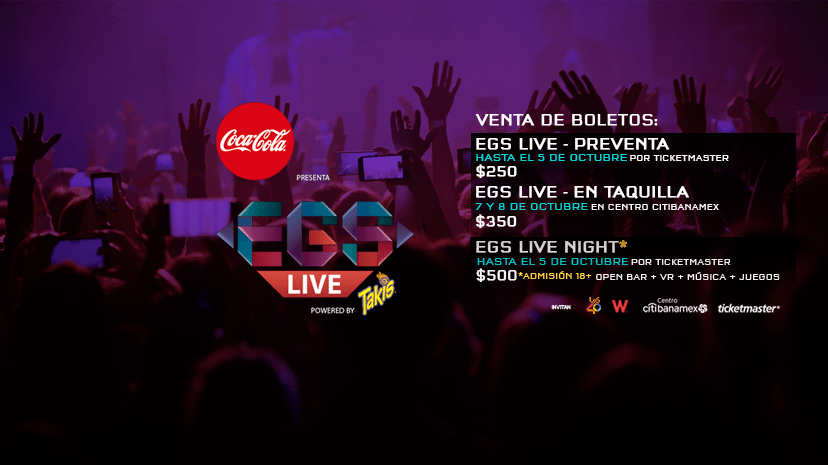 Ademas se celebrara la evolución de EGS LIVE en grande, con una fiesta exclusiva en la cual podrás disfrutar de videojuegos, tragos, música, celebridades, la sala de realidad virtual más grande de América Latina.