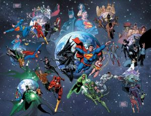 La mayoría de las ciudades que Brainiac había capturado y encerrada en un domo, que le quitaba los poderes a cualquier metahumano que hubiera dentro de la ciudad, venían de diferentes tipos de líneas de tiempo y versiones alternas. Podemos encontrar Tierras desde la Post-Crisis, hasta varios del Multiverso que se creían destruidos desde el New 52. Pero son los Héroes de la Nueva Tierra-2 y algunos héroes del Multiverso los que arreglan este conflicto.