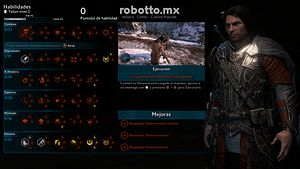 Como en el anterior juego dependiendo que capitanes venzas o asesines desbloqueas equipo y al subir de nivel puedes mejorar las habilidades que decidas para que Talion logre con más facilidad sus objetivos.