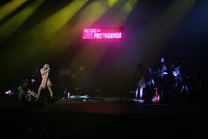 En una obra dividida en tres actos que se titula como su disco «Victims of Love Propaganda» ellos inician la velada con un cortometraje que nos comienza hablando de esas ilusiones al conocer a una persona que creemos que es especial, para continuar con la música, y desde el primer momento siempre hay algo visual que nos guía por los caminos musicales de Descartes a Kant, y que ayuda a transmitir mas fácilmente ese mensaje: El amor no es un producto idealizado, es un camino a seguir con sus altas y sus bajas, es un sentimiento y como tal lo debemos de tomar, esta banda nos busca poner a reflexionar y lo logran, por eso la escenografía entre cada uno de los tres actos va cambiando porque el mensaje durante el disco (el cual tocaron canción por canción, como una total presentación) cada cambio de vestuario y cada pequeña actuación te van llevando a las diferentes etapas de las sensaciones que la protagonista del álbum vive, ya que si algo cumple muy bien «Victims of Love Propaganda» es el narrarnos una historia.