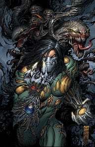 The Darkness “La Oscuridad” este cómic ya había sido publicado anteriormente en nuestro país (México) por allá de los años noventa (claro amigo lector aun había dinosaurios), en donde tuvo poca aceptación y creo que solo terminaron un arco, no recuerdo bien, este cómic originalmente fue publicado por la editorial Image Comics y TopCow, siendo una creación por si no lo sabían de David Wohl, Marc Silvestri y Garth Ennis, pero la primera aparición de este personaje, fue en el cómic Witchblade número 10 en 1996, esta serie en comparación a Witchblade aunque fue aceptada no tuvo serie de TV pero si tuvo uno o dos videojuegos para distintas consolas, y el personaje a interactuado en distintos crossovers como The Darkness-Batman, The Darkness-Wolverine, The Darkness-Hulk, The Darkness-Witchblade (que son bastantes) y tiene uno con Alien-Predator-Witchblade.