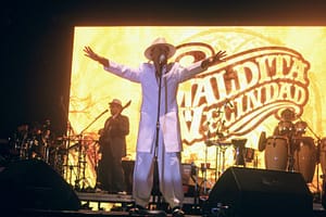 La Maldita Vecindad retorno con cambio de vestuario, pero con las mismas ganas con las que salieron al principio, y tocaron su material emblema completito para beneplácito de sus admiradores, todas las rolas una por una aunque no en orden, desde «Un Gran Circo» y «Mare»; pasando por el canto de protesta con «Un Poco de Sangre» y dejando los grandes hits hasta el final, obviamente «Pachuco» en el coro mas fuerte que se escucho en la carpa en toda la noche, para dar paso a un ambiente mas romántico con «Kumbala» ritmo mas suave y celulares arriba dando pequeñas luces de iluminación, todo para cerrar con el homenaje al divo de juarez, Juan Gabriel con el tema «Querida» poniendo punto final a una presentación memorable, en un show de la Maldita que pocas veces se vera, por lo que se estaba celebrando y por esa aura tan significativa que nos dejo «El Circo».