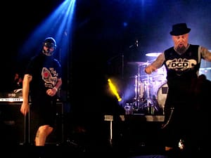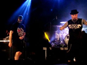Aparecieron en el escenario cerca de las 23:00 horas con el intro Sintonía y Esto es el Def usando chalecos de trabajo y máscaras amarillas neón con reflejante causando el furor. Se aventaron un setlist de 22 rolotas con los clásicos: ‘La Culpa de Todo la Tiene Yoko Ono’, ‘Sigo Siendo Heterosexual’, ‘España es Idiota’, ‘El Coche No’, ‘Ultramemia’, ‘El Día de la Bestia’, y concluyeron con ‘Armas Pal Pueblo’; mas un encore de otras 7 rolas que incluían ‘Resistiré’ (un cover a Barón Rojo) y otras del nuevo álbum llamado ‘Trending Distopic’ (como siempre haciendo uso del juego de palabras y el doble sentido con ironía y sarcasmo) para finalmente cerrar con ‘¿Qué dice la gente?’… Los subversivos incansables de Def Con Dos hicieron que su público también inconforme e insumiso no dudara en cantar, gritar y saltar sin parar las dos horas que duró el concierto.