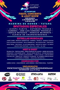 «Cumpliendo Sueños: El Showcase» es el evento para apoyar a estos pequeños, apoyados por artistas noveles que quieren poner su grano de arena para que podamos disfrutar de un show de primer nivel al mismo tiempo que hacemos una labor altruista que quedara mucho tiempo en nuestros corazones, entre los artistas participantes estarán en la parte musical artistas como Jose Riaza, Jaime Flores y el Grupo Foráneos y DJ Zoe, artistas que también buscan demostrar su talento y darse a conocer con más público, y que mejor que apoyando a esta noble causa, por lo que no dudamos que daran lo mejor de si para lograr todos ese cometido.