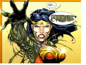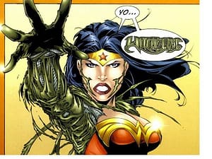 - Witchblade/JLA: Un hombre llamado Sr. Irons está en un negocio turbio con Lex Luthor. Irons quiere conseguir la Witchblade, y está haciendo varios tratos con Lex Luthor para hacerlo. Varios días más tarde, en Gotham, aparece la Witchblade tropezando por la calle y se ve que fue golpeada brutalmente y muere. Ella buscaba a Bárbara Gordon, su vieja amiga, a la cual le pidió ayuda. La Liga de la Justicia examina el cuerpo de la Witchblade. Manhunter sondea su mente, y ve una escena en la que los robots de Luthor golpean seriamente a la Witchblade, Batman está muy alarmado, porque él diseñó y los sistemas, no concuerdan y se ven raros, en eso se presenta Oracle, y Ella se convierte en una araña gigante ya que la Witchblade la posee. La Witchblade se está moviendo de un huésped a otro, en busca de la mujer más poderosa. Combaten a la araña y finalmente derrotan a Oracle interrumpiéndola del internet, que la Witchblade recorrió. La Witchblade salta a la Huntress, que Batman había llamado para ayudar antes de que se convirtiera. Batman la derrota cuando la golpea con un batarang. En la biblioteca de la Atlántida, Aquaman descubre lo que estaba buscando antes sobre la Witchblade, y se apresura a decirle a la Liga. Wonder Woman, se convierte en la nueva anfitriona pero esta «desaparece». La Liga de la Justicia la busca pero Wonder Woman supera la posesión inmediatamente, ya que su espíritu es puro y eso la salva. Después Wonder Woman da un discurso sobre las mujeres en el siglo 21, y se revela que la Witchblade sigue en ella y comienza a golpear a los senadores de la ONU. La Liga de la Justicia se enfrenta a la Wonder Woman que resulta ser más poderosa que todos juntos, derrota a Superman, Green Lantern, Martian Manhunter, hasta que la verdadera Witchblade llega, y bajo su mando regresa de nuevo a su cuerpo. La cual regresa de mala gana. Es bastante malo el comic no aporta nada el dibujo es bueno pero eso no la salva de ser mala.