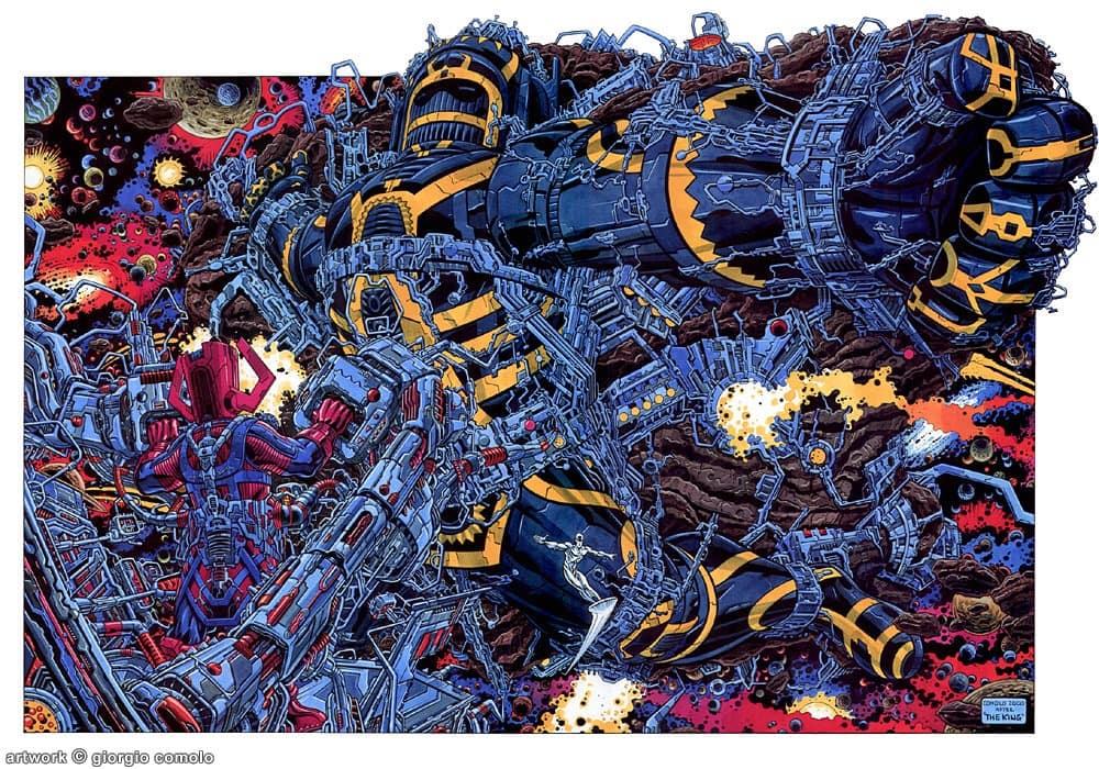 Jack Kirby nació en New York en 1917 ya hace mucho tiempo verdad, y su verdadero nombre fue Jacob Kurtzberg, Kirby empezó su carrera profesional en los años 30, trabajando como dibujante en prensa y estudios de animación. Con el boom superhéroico creado con la aparición de Superman en 1938. Y porque es tan importante te preguntaras, bueno gracias a él tenemos el Universo Marvel ya que en 1940 junto a Joe Simons creo al Captain America y fue el responsable de traerlo de vuelta e ingresarlo a los Avengers y junto a Stan Lee crearon a casi todos los personajes modernos y a los Dioses Cósmicos como Galactus y a los Celestials, también dejo escuela en DC ya que gracias a él se creó el tan famoso Cuarto Mundo, ¿no sabes cuál es el Cuarto Mundo?, bueno Jack creo a Darkside y a todos los Nuevos Dioses y a Kamandi, después de eso regreso a Marvel y creo a los Eternals.