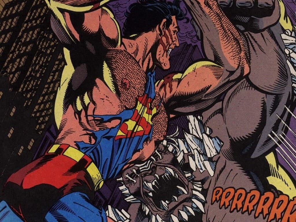 Pero fue en 1992 que se dio la HISTORIA mas grande del Supes, claro que si, La Muerte de Superman fue un Parteaguas en todo el mundo, El Monstruo llamado «Doomsday» (en la Tierra), «El Definitivo» (por su creador) y/o «El Destructor» (Por todo el Universo), surgió de una tumba/prisión en el este de Ohio y comenzó a marchar hacia Metrópolis. La bestia solo sin ayuda derrotó a la Liga de la Justicia (la Liga consistía en Blue Beetle, Booster Gold, Bloodwynd, Maxima, Fuego, Ice y Guy Gardner). Superman luchó contra la criatura a través de varios estados. Después de una batalla desesperada, Superman logró sofocar el monstruo, pero se derrumbó, muriendo en los brazos de Lois Lane.
