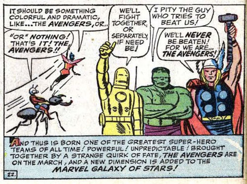 La Avispa fue la única mujer fundadora de Los Vengadores y fue ella misma la que le puso el nombre al grupo. Hizo frente con el Hombre Hormiga y sus otros compañeros a enemigos que ningún superhéroe sería capaz de derrotar por sí solo. Tras la primera aventura de los Vengadores, la asociación de Janet con Hank acabó en una unión mucho más profunda: Los dos, con el tiempo, se enamoraron y, más tarde se casaron.