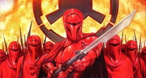 Imperio Carmesí es una secuela inmediata de Imperio Oscuro. Publicada en 1998 y 99, nos narra la historia de los guardias imperiales del emperador. Estos comics nos dan algunas respuestas de los enigmáticos protectores de Darth Sidious, muestran su importancia y el duro entrenamiento y selección al cual eran sometidos, cosa desdeñada un poco por Lucas en las precuelas.