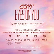 Los chicos de Got7 presentan su gira WORLD TOUR ‘EYES ON YOU’, se presentaran el día 13 de julio en el palacio de los deportes así que si aun no haz comprado tu boleto aún puedes comprarlo: http://www.ticketmaster.com.mx/got7-2018-world-tour-eyes-on-mexico-distrito-federal-13-07-2018/event/140054A3D5A0AE9B