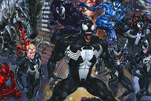 Venomverse fue publicado originalmente en 2017 y en él, Doctor Strange invoca diferentes versiones del simbionte para hacer frente a los Poisons, una raza alienígena que básicamente es el depredador natural de los klyntar (raza a la que pertenece Venom) y amenaza con masacrar al universo Marvel, por lo que el Hechicero Supremo deberá reunir a héroes, villanos y todo aquel que se quiera unir a la resistencia.