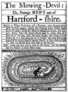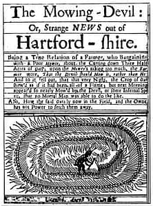 Un folleto publicado el 22 de agosto de 1678, con el nombre de «The Mowing-Devil» (‘el diablo segador’) que muestra a un demonio cortando un gran círculo en el cultivo es considerado como el primer precedente de un agroglifo. El investigador Jim Schnabel no lo considera como un antecedente histórico ya que el texto describe a los tallos como cortados y no doblados.