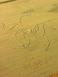 Desde la primera noticia acerca de los círculos en los cultivos se ha especulado con la autoría por parte de seres de procedencia extraterrestre. Sin embargo, jamás se ha encontrado ninguna prueba fehaciente. La explicación más plausible es la creación humana.