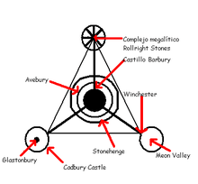 Esquema de la figura del castillo Barbury, la cual puede ser considerada como un mapa de la zona.