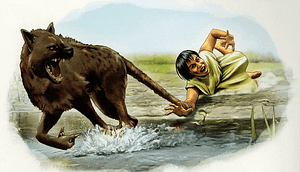 El kelpie es una criatura de origen escocés que toma la forma de un caballo y, en ocasiones, de un joven atractivo. El kelpie embruja vados y arroyos para atraer a los viajeros hasta la muerte.
