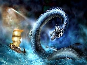 Muchos son los mitos acerca de gigantes marinos una de las mas difundidas entre comunidades de marineros es la ls serpientes marinas gigantes, criaturas de gran tamaño que como el anteriormente mencionado Kraken hundian embarcaciones.