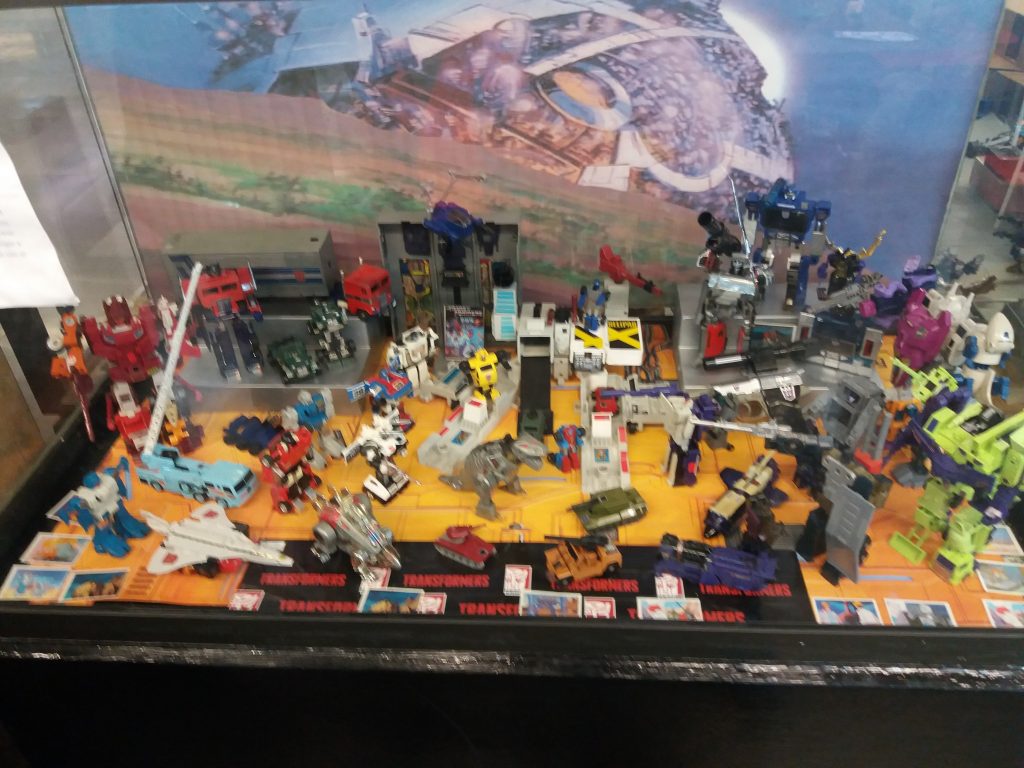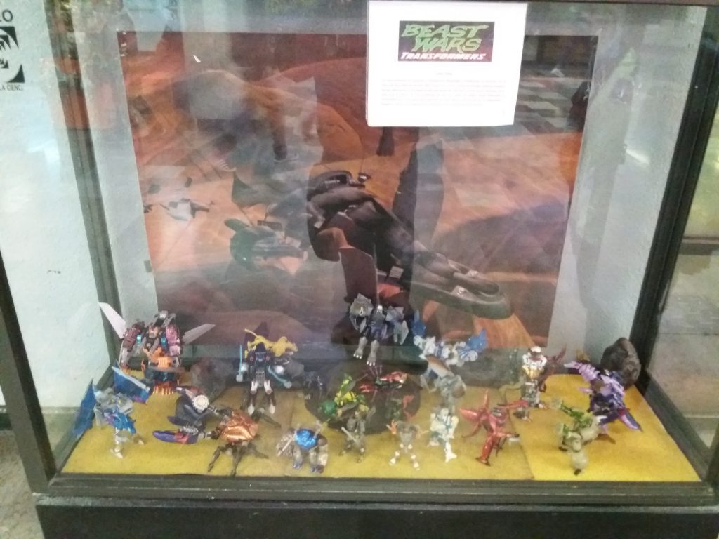La maqueta mas grande es sobre las películas, en las demás vitrinas tenemos G1, Bumblebee, Beast Wars, G.I. Joe’s y parafernalia de Transformers como libros, cómics, videojuegos, etc. Antes contaban con un libro de comentarios para que pudieras ponerles algunas sugerencias como figuras o sobre la expo o también para que se pusiera una batalla en particular, pero una día desapareció y pues ya no has puesto otro.