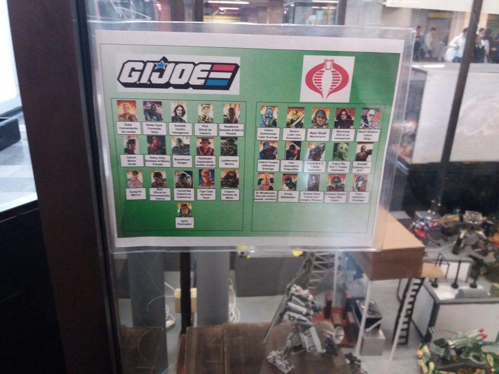 Me dicen que les toma aproximadamente 2 días acomodar toda la exhibición, en esta ocasión les tomo una semana ponerla por diferentes motivos. también me indican que TODAS las figuras son de la Marca Hasbro a excepción de Strafe que es de otra marca y un par de Custom, pero estos solo son en el trabajo de pintura, no se le hizo mas modificaciones, en este caso fue en dos Joe’s, en el caso de los Joe’s como en la de los Transformers están todos los conocidos desde Dutch y Snake Eyes, hasta el Cobra Comander y Storm Shadows.