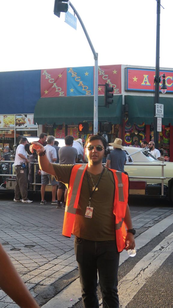 Ya se han mostrado algunas imágenes oficiales de la película, el editor de Vice Los Ángeles nos permitió usar estas imágenes del set de grabación con el que se topó hace unos meses mientras caminaba por Hollywood. Como se puede ver en las primeras imágenes, los elementos de seguridad no dejaban que Jamie tomará fotos, hasta que lo consiguió y el mismísimo Tarantino posó para una de ellas
