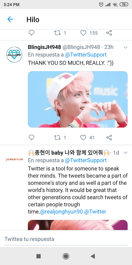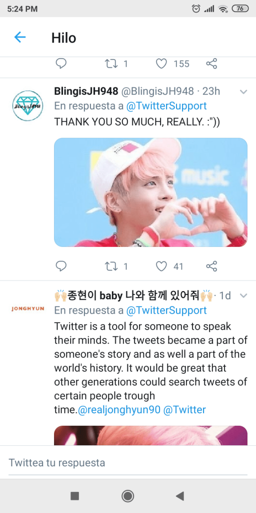 A decir de sus fanáticas, la cuenta de Tweeter de Jonghyun está llena de memorias y recuerdos que no quieren que desaparezcan, Jonghyun era reconocido precisamente por mantener un contacto directo con sus fanáticas a través de Twitter.