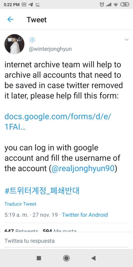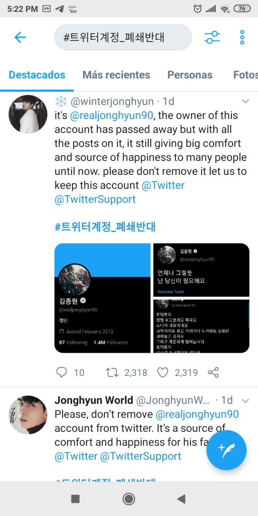 Pero el caso más sonado fue el de las fanáticas de la estrella de K-Pop, Kim Jong-hyun, quien murió en 2017, una avalancha de peticiones y tweets inundaron la red social pidiendo que no removieran su cuenta.