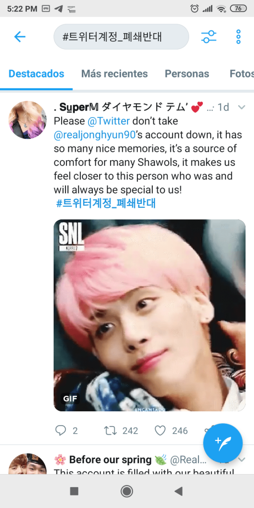 El fandom del grupo K-pop, Shinee, se unió para evitar que la cuenta de Jonghyun fuera borrada de la red social, mandando mensajes a la cuenta @Twittersupport pidiendo que se detuviera el proceso de eliminación de la cuenta.