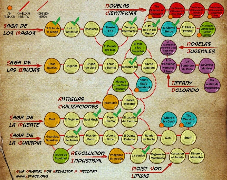 Mundodisco es la tierra fantástica creada por Terry Pratchett para ambientar sus libros. Su línea de narración principal consta de 41 libros, pero esta se diversifica en varios líneas editoriales, algunas oficiales otras creadas por los seguidores de la obra de Pratchett. Antes de las publicaciones de J.K. Rowling llegaran a los estantes, la obra de Pratchett era el trabajo de un autor inglés más vendido en el mundo, y no es para menos.