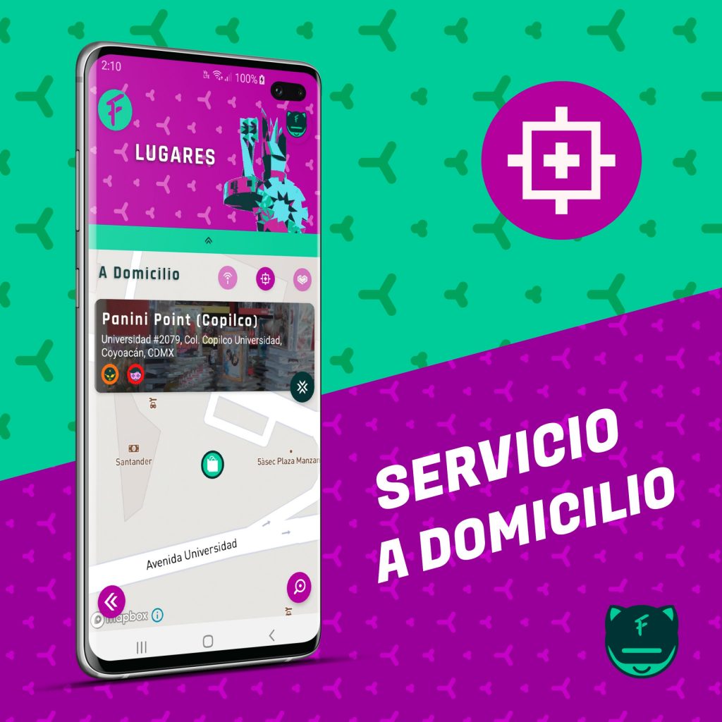 Dentro de la aplicación se pueden encontrar a emprendedores, marcas y lugares En Línea, Sitios web o plataformas digitales como tiendas en línea, sitios culturales, sitios académicos, plataformas de streaming o incluso otras aplicaciones. Además El mapa de lugares mostrará únicamente tiendas con envíos a domicilio o escuelas y recintos culturales con oferta de actividades en línea.