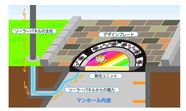 Las tapaderas LED funcionan con una unidad de emisión de luz led instalada dentro de una placa de hierro y un plato que transmite luz a la superficie. La fuente de poder utiliza la energía eléctrica generada por un panel solar instalado en la cercanía y que considera al medio ambiente, la brillantez generada durante la generación de poder está diseñada de modo que la luminiscencia pueda ser ajustada para no obstruir el tráfico.