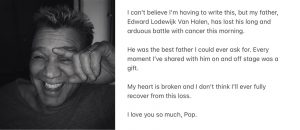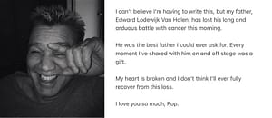 La noticia la dio a conocer Wolf Van Halen, hijo del músico y actual miembro de la banda Van Halen, misma que fundo Eddie a lado de su hermano Alex, en 1972.