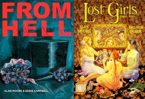 En su continua exploración de la psique humana realiza dos trabajos atractivos. Moore considera que el asesinato es la antítesis del erotismo, bajo esta premisa crea From Hell entre 1989 y 1996, donde explora la naturaleza del crimen y lo que ocurre alrededor de él. En contra parte, realiza junto con Melinda Gebbie Lost Girls en 2006, novela grafica erótica donde mezcla a Alicia, Dorothy y Wendy (de Alicia en el País de las maravillas, El Mago de Oz y Peter Pan, respectivamente) en una serie de aventuras sexuales. Esto forma parte de su pensamiento sobre el ser humano y su naturaleza.